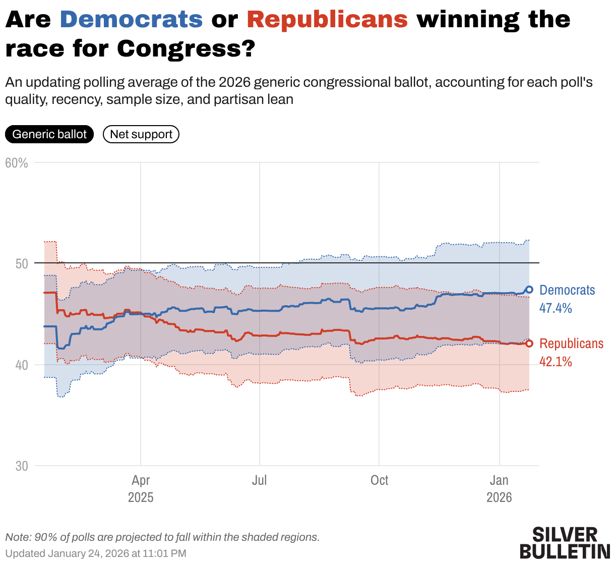 Il contesto politico sembra favorevole ai democratici. L'approvazione di Trump è bassa e in declino, avvicinandosi ai minimi del suo secondo mandato con un saldo negativo di 14 punti. Gli elettori hanno reagito negativamente a recenti episodi come l'uccisione di Renee Good da parte di un agente dell'ICE a Minneapolis e alla postura sempre più aggressiva del presidente verso la Groenlandia. Silver conclude che mentre la Camera è "da perdere" per i democratici, il Senato rimane un obiettivo difficile ma non impossibile, e molto dipenderà da come evolverà la situazione nei prossimi mesi.