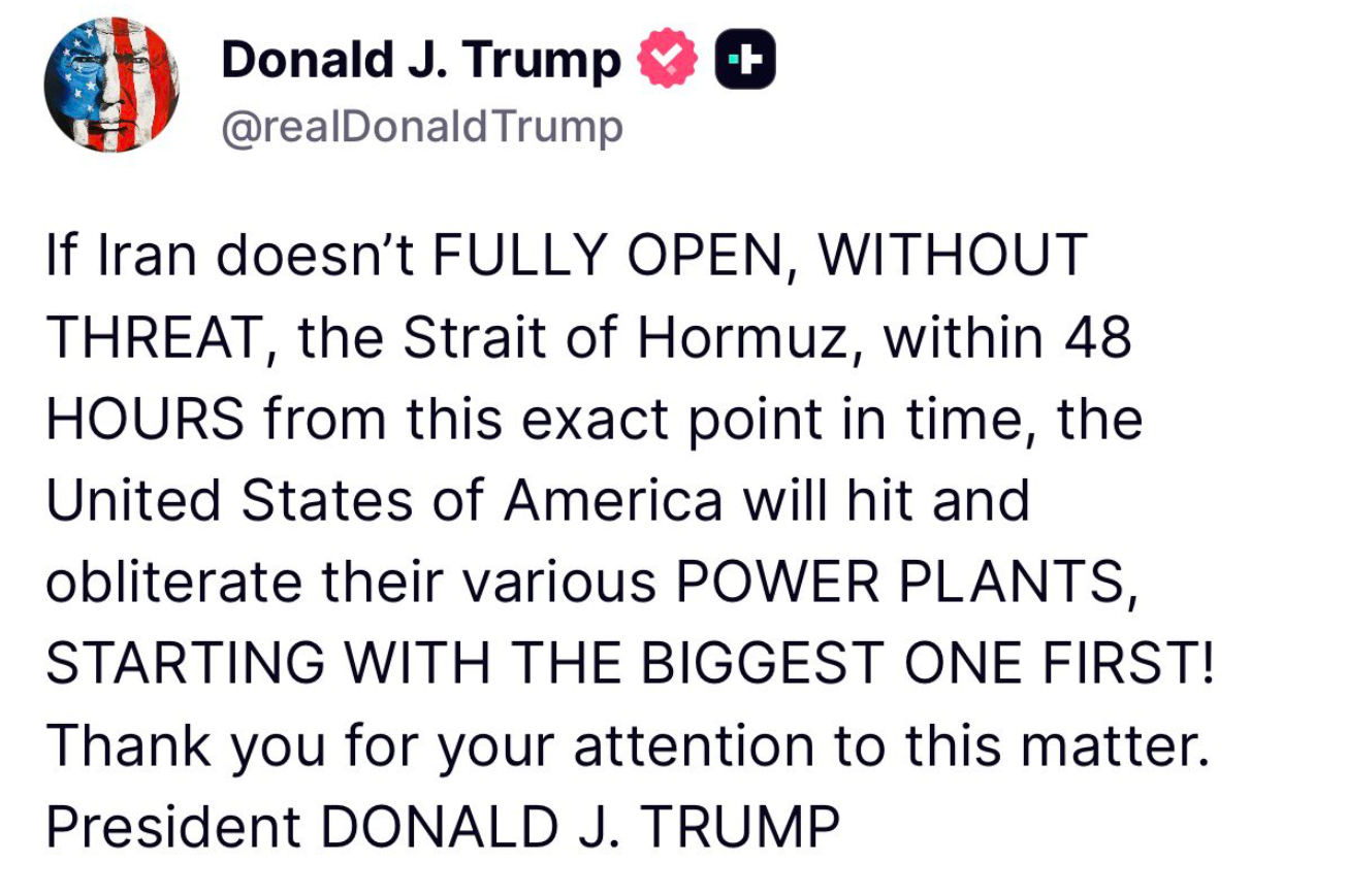 Ieri sera il presidente Donald Trump ha lanciato un nuovo ultimatum all’Iran: se lo Stretto di Hormuz — snodo attraverso cui transita circa un terzo del petrolio mondiale — non sarà riaperto "completamente e senza minacce" entro 48 ore, le Forze Armate statunitensi "annienteranno" le principali centrali energetiche del Paese. In un messaggio su Truth Social, Trump ha precisato che i raid partirebbero "dalla più grande", un riferimento che sembra alludere direttamente alla centrale di Bushehr, l’unico impianto nucleare civile operativo in Iran.