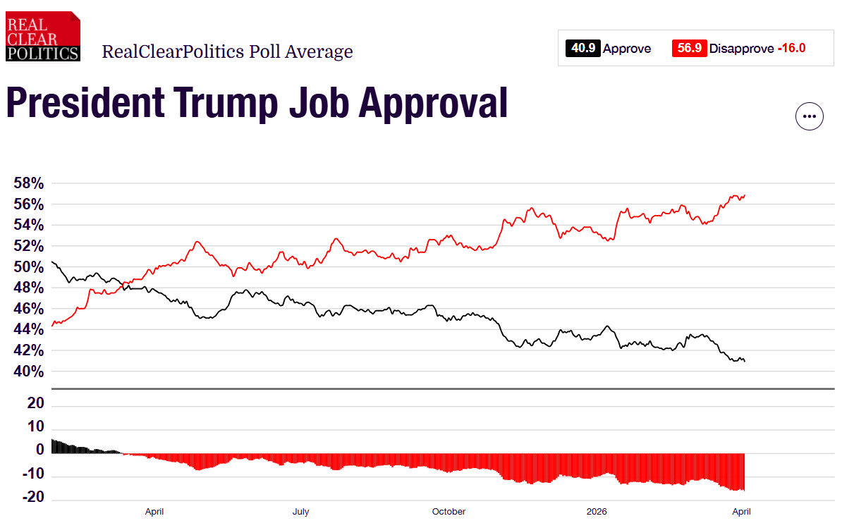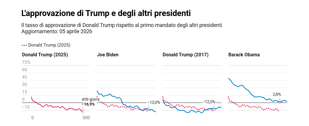Dopo oltre un mese di guerra, la popolarità di Trump sta subendo un totale deragliamento: non solo questo è il punto più basso della sua seconda presidenza, ma rappresenta uno dei punti più bassi di sempre per un presidente nella storia recente della politica americana.