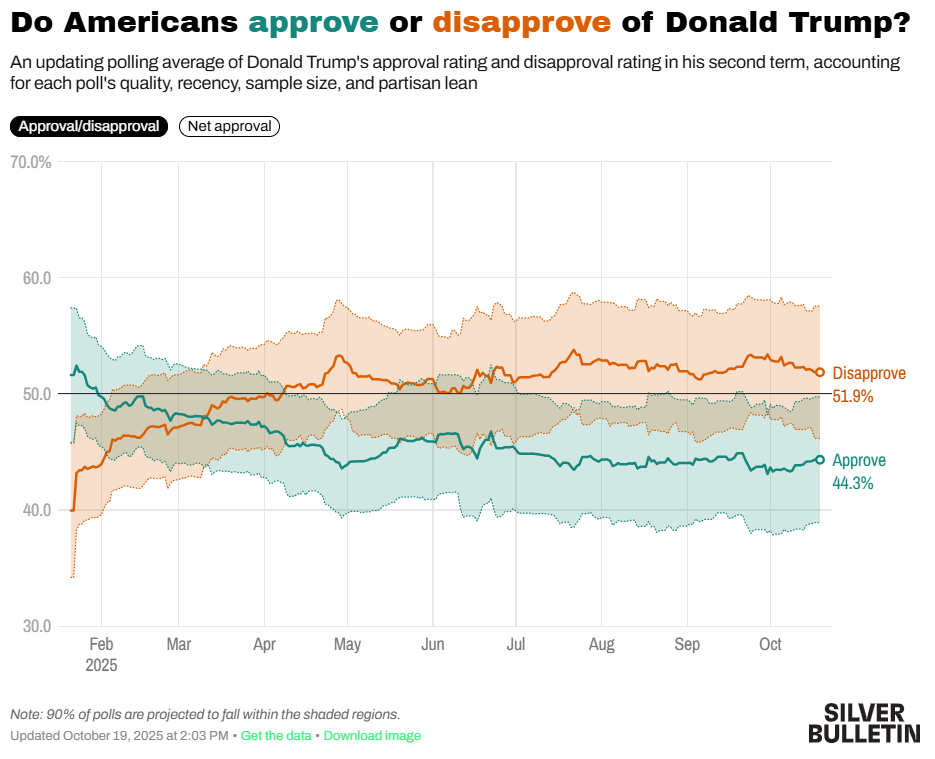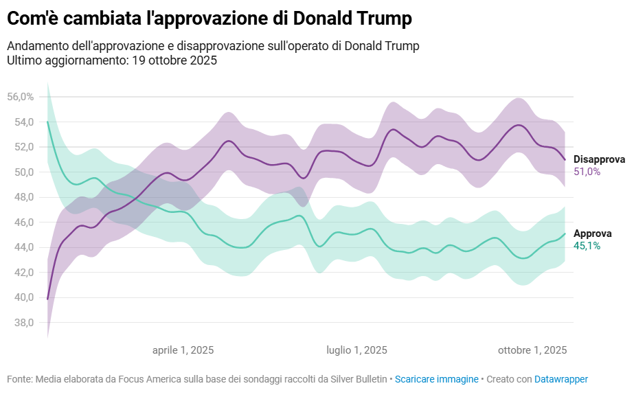 Popolarità Trump, i venti di pace battono lo shutdown e portano a un nuovo miglioramento (19 ottobre)
